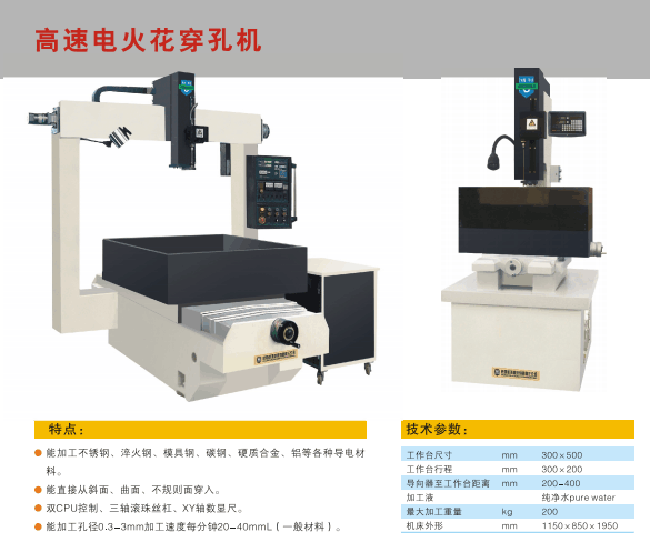 能加工不銹鋼、淬火鋼、磨具鋼、碳鋼、硬質(zhì)合金、鋁等各種導(dǎo)電材料;能直接從斜面、曲面、不規(guī)格面穿入。